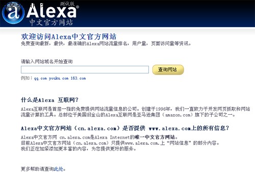 10月16日消息,全球最知名的網(wǎng)站流量排名網(wǎng)站Alexa旗下的中文網(wǎng)站cn.alexa.com網(wǎng)站日前在華悄然推出,此舉也意味著,這家知名的流量排名站點或?qū)㈤_拓中國市場。