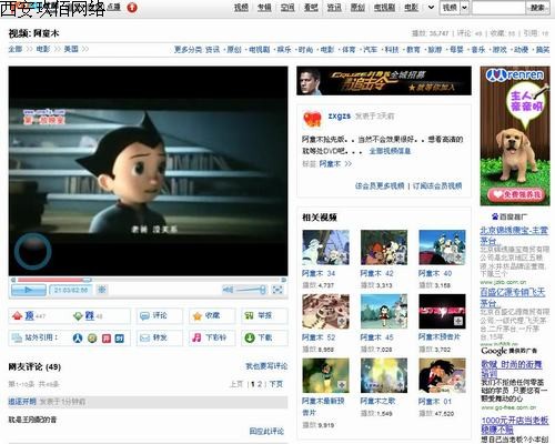 優(yōu)酷網(wǎng)上出現(xiàn)盜版《阿童木》(截屏圖)