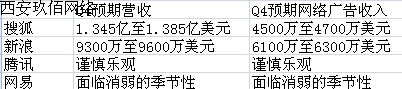 受春節以及廣告主廣告投放周期等影響,四家門戶網站紛紛調低了Q4網絡廣告收入期望數值,但相關分析稱,這是正常的季節性調整。