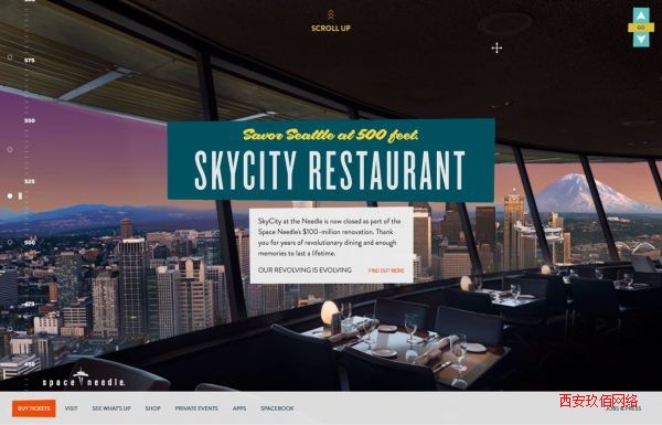 視差特效最重要的用途之一,是營造獨特的、擬真的視覺奇觀。設計師通過合理的素材搭配,借助動效和不同的設計技巧,來創造逼真、有趣的視覺體驗。 越來越成熟的3D設計讓卡通和接近現實的設計元素的設計成本變得低廉,像上面 Madwell 這個網頁,這些風格接近卡通,但是視覺效果和形式感都極為突出的元素,在視差動效下產生了類似VR的視覺體驗。 而 Seattle Space Needle 的視差特效則采用的是更為經典的設計,當用戶在瀏覽的時候會因為元素間不同的運動速度而產生擬真的瀏覽體驗。不過,這個網站的獨特之處在于,它是從下往上瀏覽的,非常有意思。當用戶通過網站的不同區塊到達頂端的餐廳區域的時候,會感受到這個餐廳所處的位置之高,城市的天際線和CTA元素結合到一起,讓你不會錯過關鍵的信息。這樣的設計是教育性的,也是冒險的,但是它確實創造了前所未有的體驗,令人難忘。 視差特效確實是時髦而又有趣的,但是正如我們無數次評價設計趨勢的時候所說的:它并不一定適合每個項目。當你在構思網站設計的時候,還是要事先了解你的用戶和他們的偏好,通過小范圍的測試和跟蹤分析,了解你的策略是否是有效的。當你發現視差特效有著不錯的效果之時,well,不妨拿來做點有趣的東西。